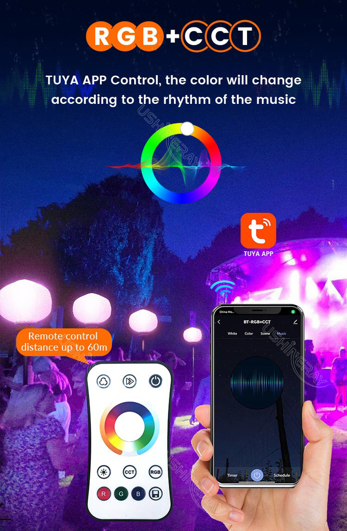 Dimmable and Color Changable: Power Dimmable, RGB + CCT color options via remote or Tuya App.
