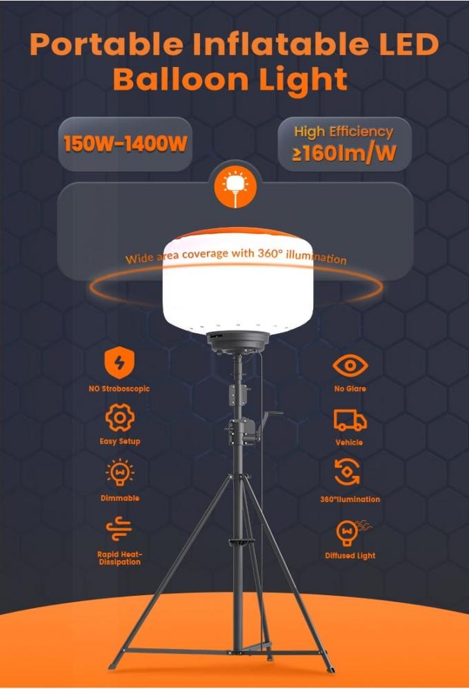 Telescopic Mobile Light Tower 1400W LED Balloon Lamp for Construction Sites